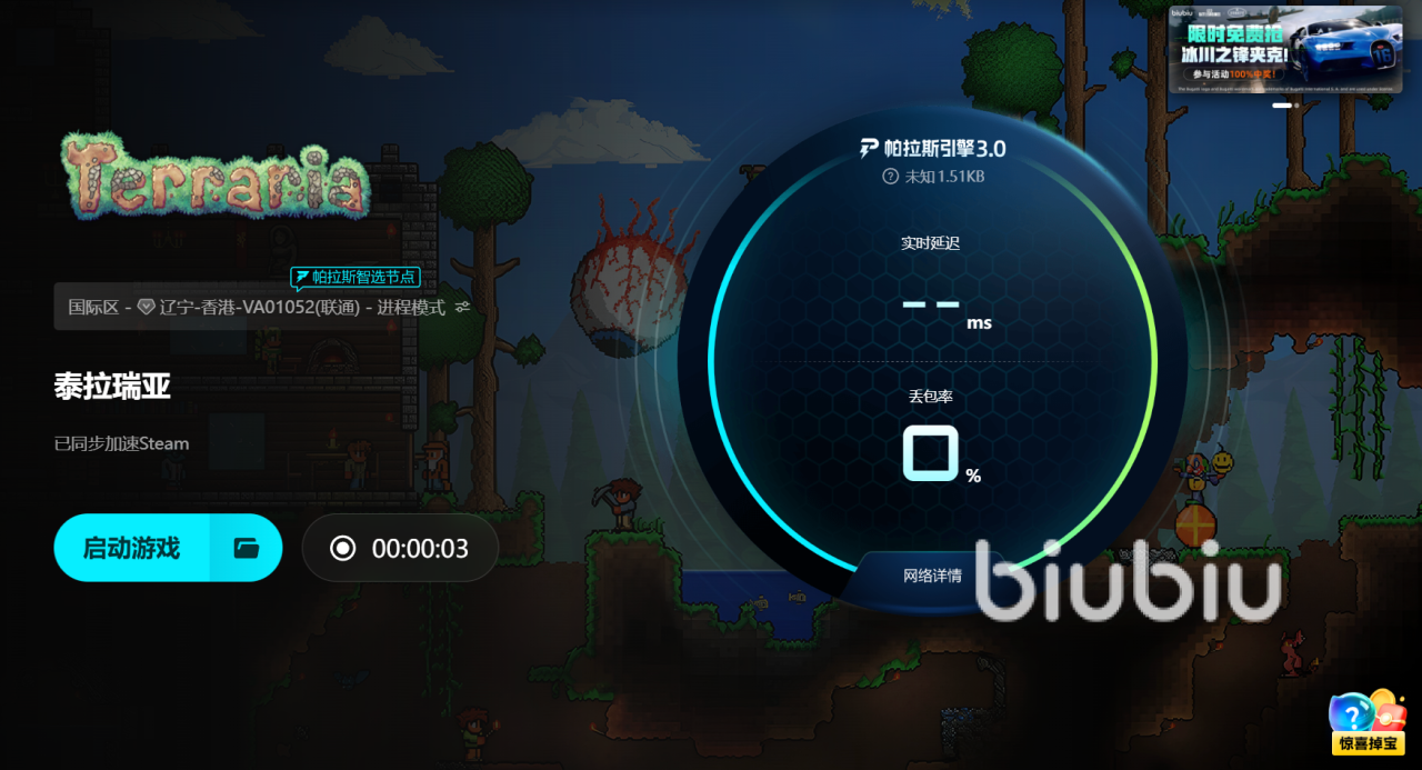 如果你也正在为泰拉瑞亚闪退steam而苦恼,不妨在进入游戏前先打开biubiu加速器。它能帮你稳定连接,减少闪退,让你专注于探索地下世界、挑战Boss与建造家园,而不是一次次被意外中断打断冒险的脚步。只有顺畅的网络环境,才能真正释放出这款像素沙盒游戏的无限魅力。