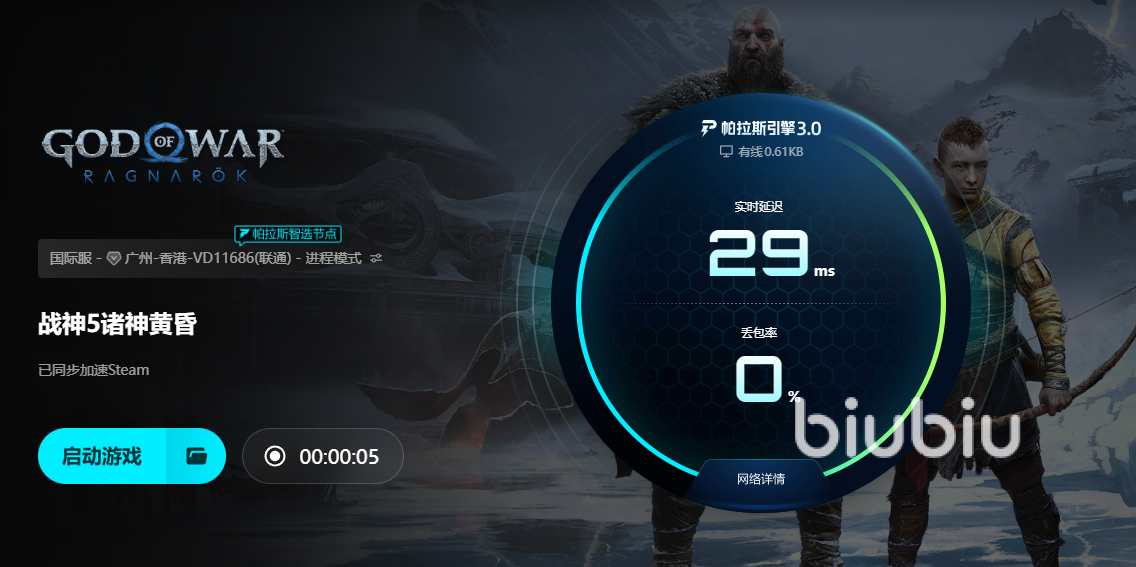 在排除设备与系统问题后,若闪退仍频繁发生,需重点关注网络因素的影响。《战神5》部分功能如存档云同步、在线排行榜更新等需联网完成,若网络连接不稳定,数据传输中断或延迟过高,会导致客户端与服务器交互失败,进而触发闪退。尤其是在开启云存档自动同步时,若网络突然波动,存档数据传输不完整,游戏会因数据校验错误强制退出。这种情况下,常规的设备调整无法解决问题,需借助专业工具优化网络连接,biubiu加速器便是针对性的解决方案之一。