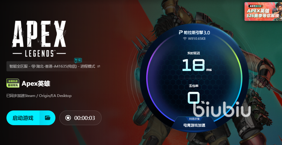 好了,以上就是关于APEX英雄加速器的全部介绍了,这款作品不仅玩法丰富,道具多样,还支持使用各类枪械与技能搭配,战斗体验十分畅快。而使用biubiu能够有效优化网络连接,使用后,大家可以明显感受到游戏画面加载更加流畅,进入对战后,无论是施放技能还是完成各类精细操作,都能更加顺畅自如。整体视觉表现和响应速度获得显著提升,这些都得益于工具背后高效的网络优化能力,让大家的对局更加流畅稳定。如果小伙伴们心动了,就赶快去试一试吧。