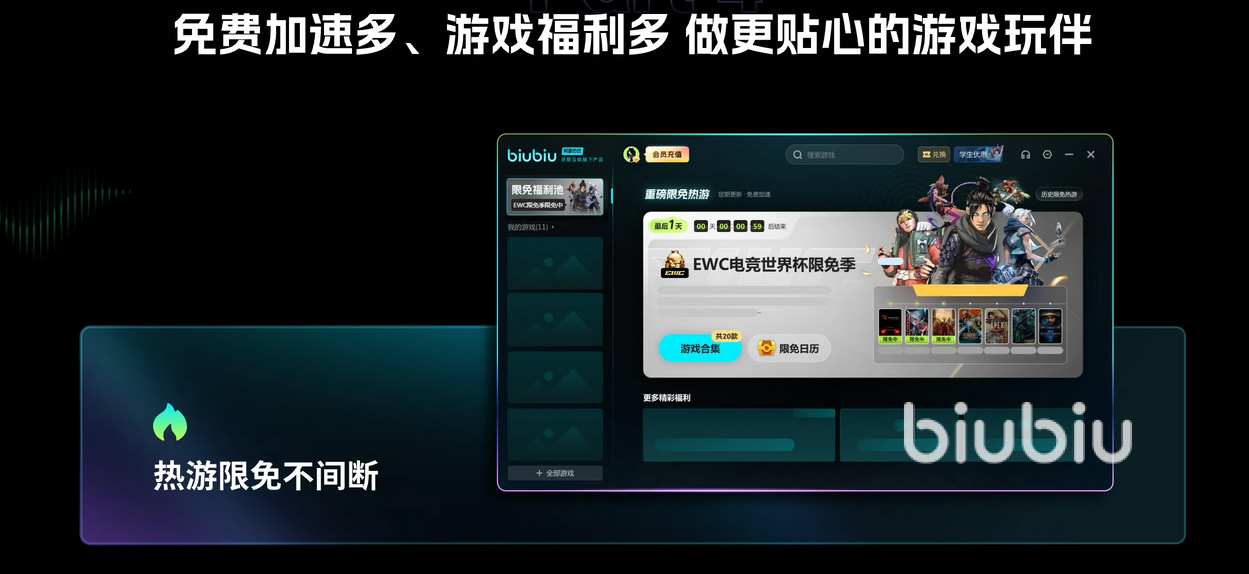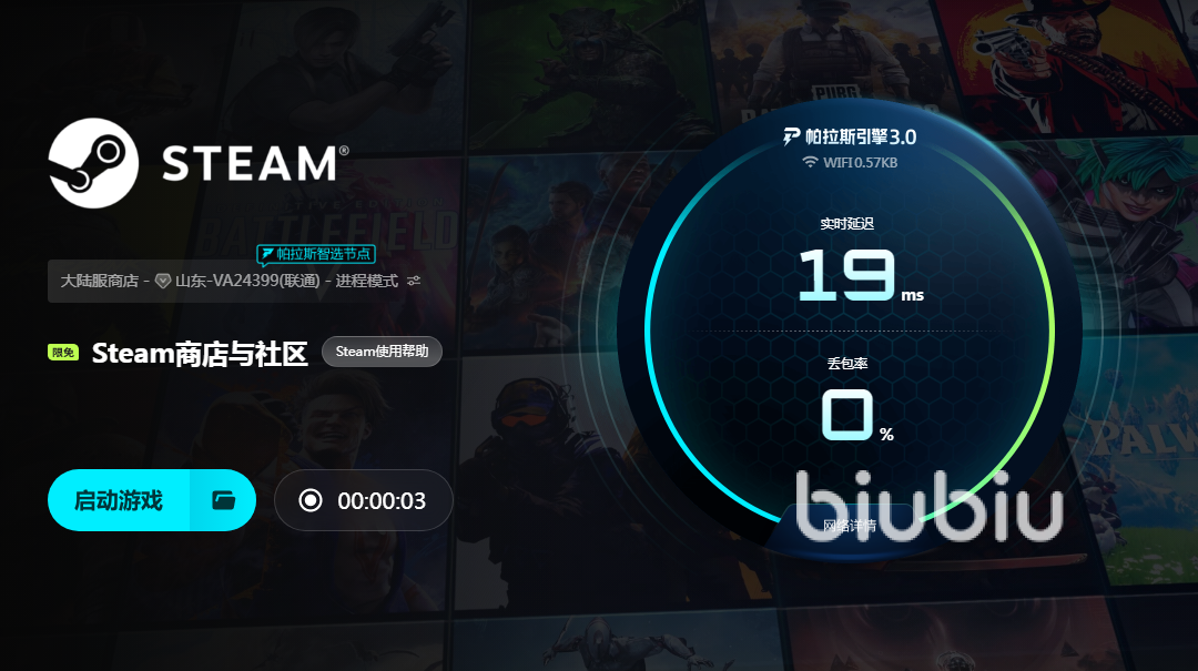 对于广大游戏玩家来说,小编认为biubiu加速器,是现在非常适合选择的一个加速软件,biubiu在加速性能、自身的加速覆盖范围以及性价比等方面都可圈可点。首先是经过一次重磅升级之后,biubiu现在已经升级到了帕拉斯3.0,作为自身的加速引擎,该引擎相比于上一代有着明显改善,在开发过程中还特意邀请了冠军选手Aixleft,这样在加速性能方面就能够充分满足电竞选手的要求。在福利方面,biubiu的免费加速时间福利非常丰厚,新注册的号直接就能免费加速24小时,还为每个号都准备了一个兑换码【biubiu不卡顿】,输入兑换码就能兑换三天加速时间。