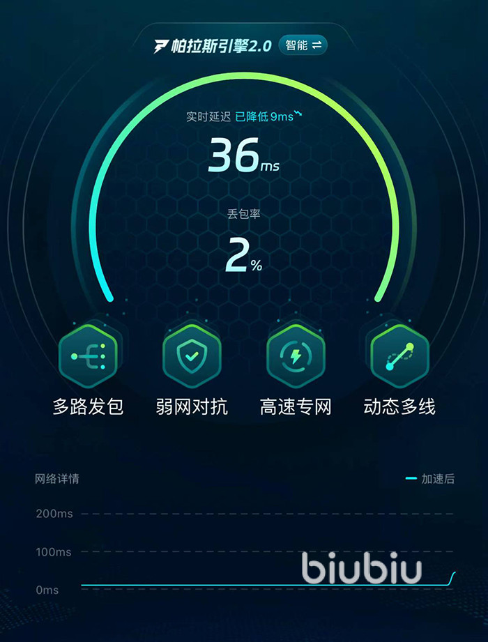 另外,biubiu还有这对特殊情况下的多个解决技术,如游戏下载,由于手机下载国际服游戏,对于网络非常难,包括难以登录游戏商店,难以提高速度,而biubiu都可以轻松做到,提供稳定的下载速度,还有服务器异常的特殊时期,会使用多路发包技术,确保游戏数据包能完整送抵服务器,另外,为了解决手机受信号影响造成的各类问题,biubiu充分利用自身带有的智能系统及数据补发功能,确保客户端数据能完整,及时的发送到服务器。