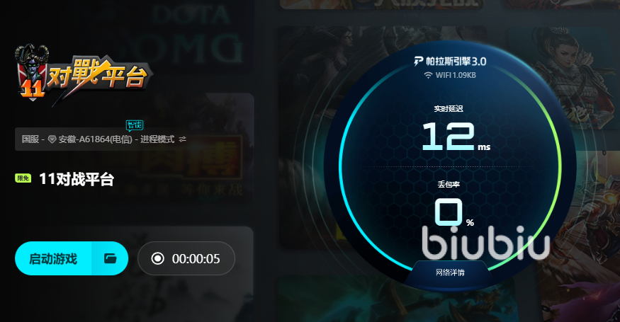 诸如biubiu这类专业级加速器,正是以这些能力为核心,凭借分布广泛的节点集群、智能路由选择及实时路径切换技术,为11对战平台提供高速且稳定的连接支持,确保玩家获得流畅的对战体验。并且在用户体验方面,biubiu的设计十分简洁直观,大家安装并启动后,用户只需在首页搜索11对战平台或相应游戏名称找到专区,一键点击加速即可自动完成线路配置,无需手动调整参数或选择节点。