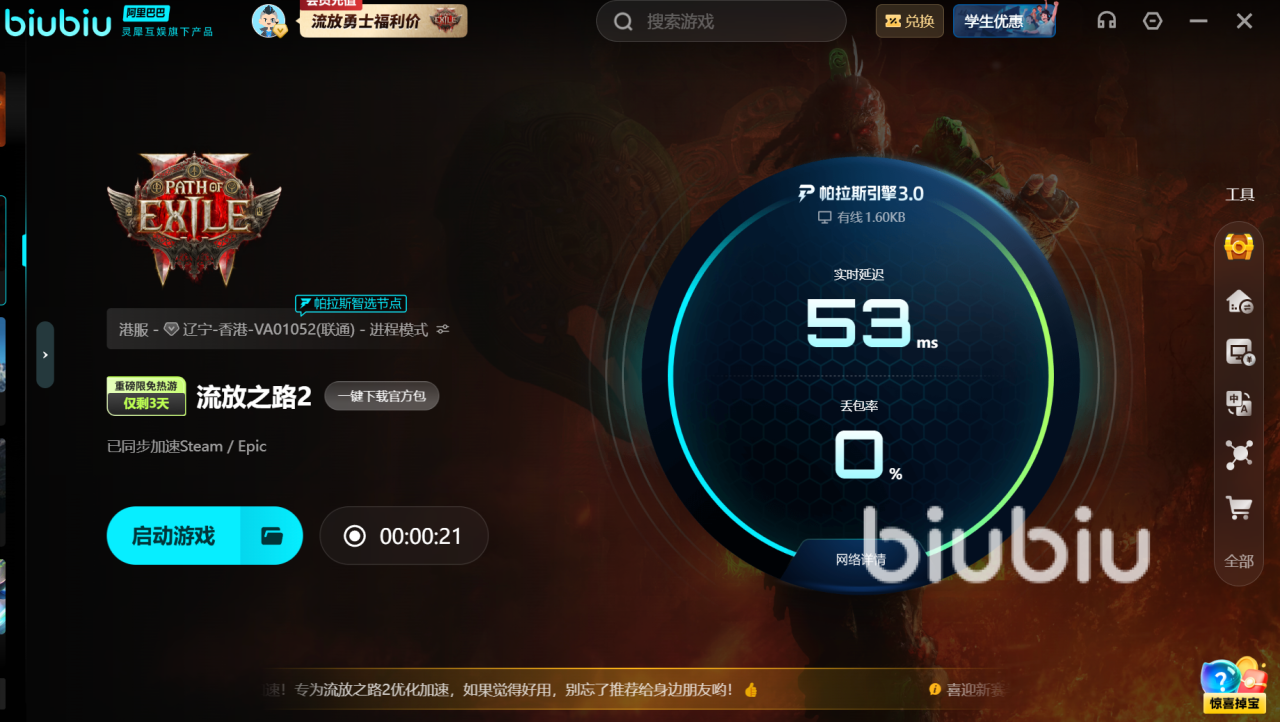 为帮助玩家快速体验稳定连接,biubiu加速器特别准备了福利。软件支持免费下载和安装,新用户注册即可立刻解锁24小时的免费加速体验,而所有玩家只需在客户端首页【兑换】页面输入口令【biubiu不卡顿】,还能再领取72小时免费使用时长。这相当于三天的稳定保障,无论是单人排位还是组队联机,都能切身感受到优化前后的不同。