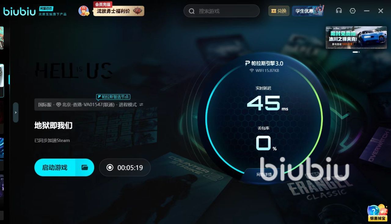 以上就是对地狱即我们延迟丢包应对方法的介绍了,别再让烦人的延迟干扰你的胜利了,biubiu加速器可谓是大有帮助,家庭网络优化做得相当出色,玩游戏几乎告别了卡顿和跳ping。对于想要在游戏上获得最佳游戏体验的玩家来说,无疑是一个不可或缺的工具。解决了网络问题,才能更专注于战术和操作的思考。