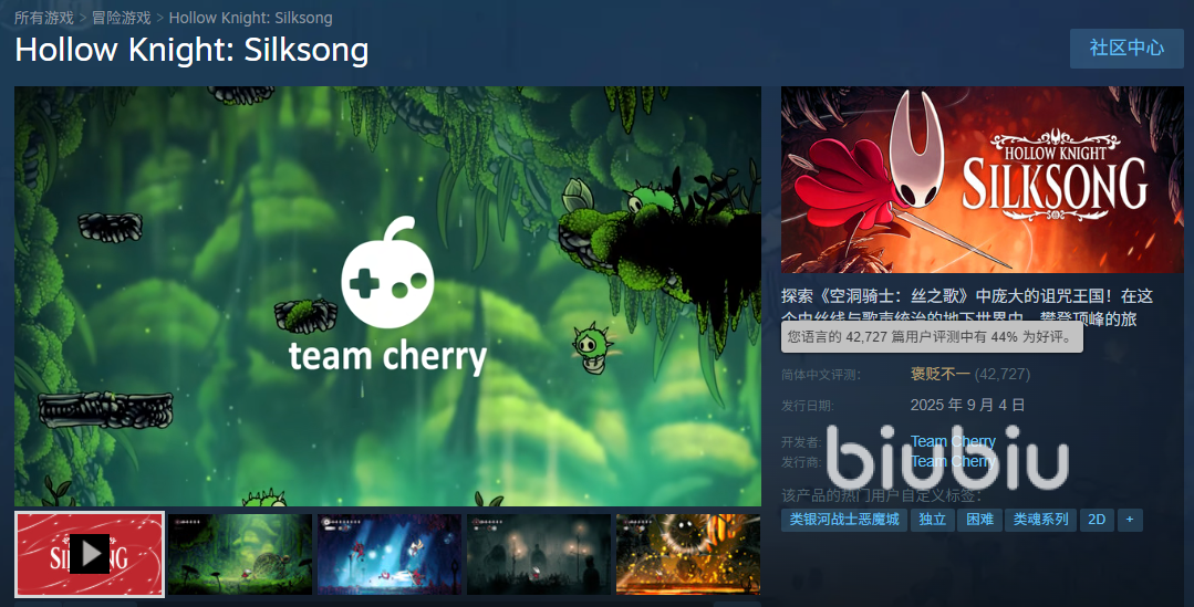 总之,好玩是真的,有难度也是真的,《空洞骑士:丝之歌》无疑确立了自己作为近年来最具挑战性的类银河战士恶魔城游戏之一的地位,其难度提升不仅体现在数值层面,更深入到操作机制、资源经济和探索设计的核心。也因此,游戏似乎更加面向那些寻求极限挑战的核心玩家,而非轻松体验的休闲用户。