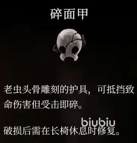 7、碎面甲:可以抵挡一次致命伤,如果你还有凉血,受到了凉血伤害,则面具会直接碎掉,溢血时受到两血伤害,则会保留一滴血。