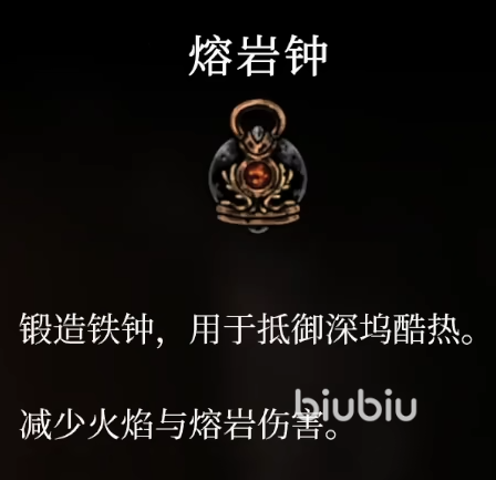 2、熔岩之钟 (Lava Bell):属于蓝色饰品类纹章,可以保护持有者免受岩浆伤害(即免疫岩浆地形伤害)。