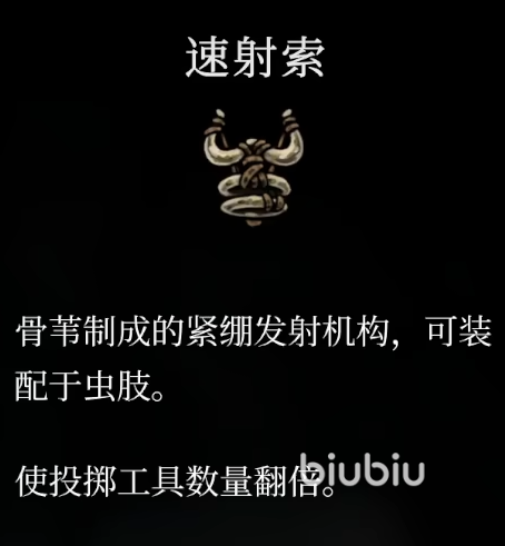 18、速射索:一次可以扔两个道具,速度更快,一次消耗两个。