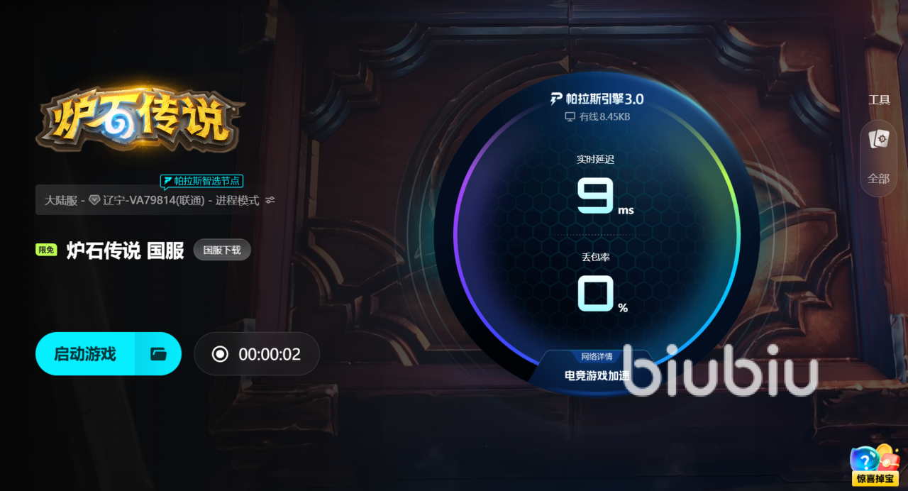 如果你也正在为炉石传说闪退而苦恼,先打开biubiu加速器,让网络更稳、退出更少,整局游戏都能畅快进行,让你只关注策略,对局本身。只有顺畅的连接,才能真正释放出卡牌游戏的竞技价值,让你尽情享受炉石的乐趣与挑战。