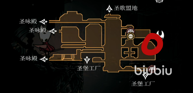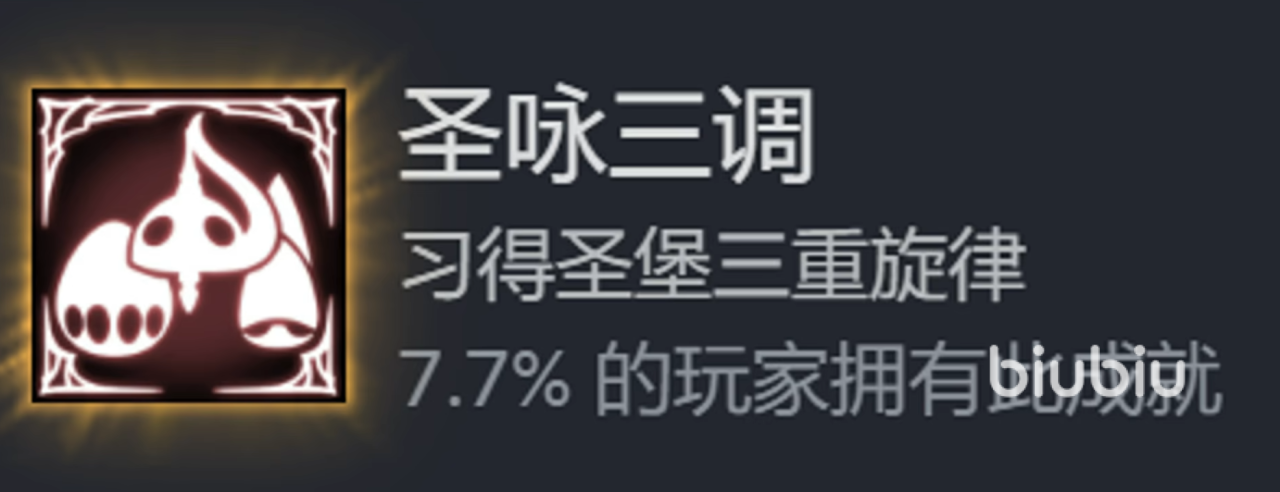 在游戏过程中收集齐圣堡三重旋律(三个旋律分别位于高庭、机枢核心和书库,其中书库的旋律需要从工厂右上角的隐藏通道进入)。携带三重旋律,击败位于摇篮圣所的苍白之母(Silk Mother)。