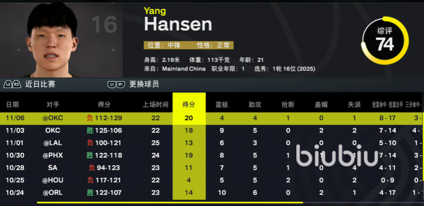 好消息告诉大家,nba2k26当中,这位年轻的内线球员是登场了,在虚拟世界当中也拥有了自己的高光时刻。官方是将其的新秀综合能力评分设定在74,这个分数对于初入联盟的新秀来说,已经是高分档次了。而且站扣方面数值都达到75分以上,身高臂展以及内线爆发优势很大,是值得使用的球员。