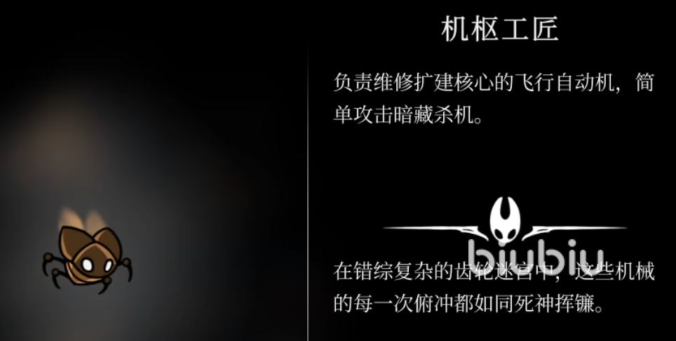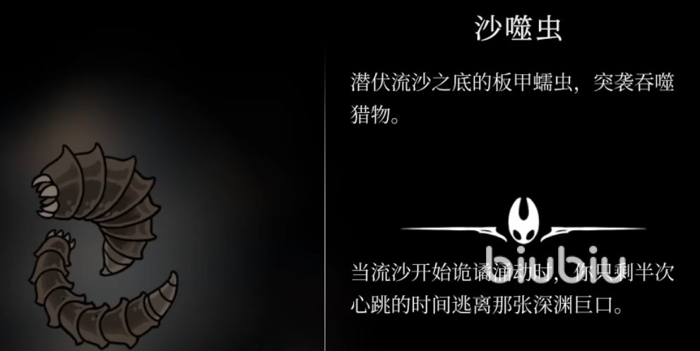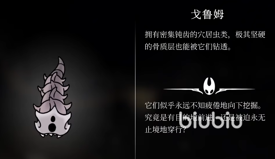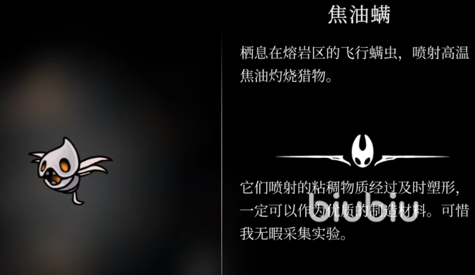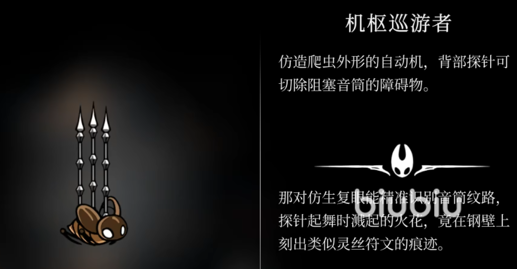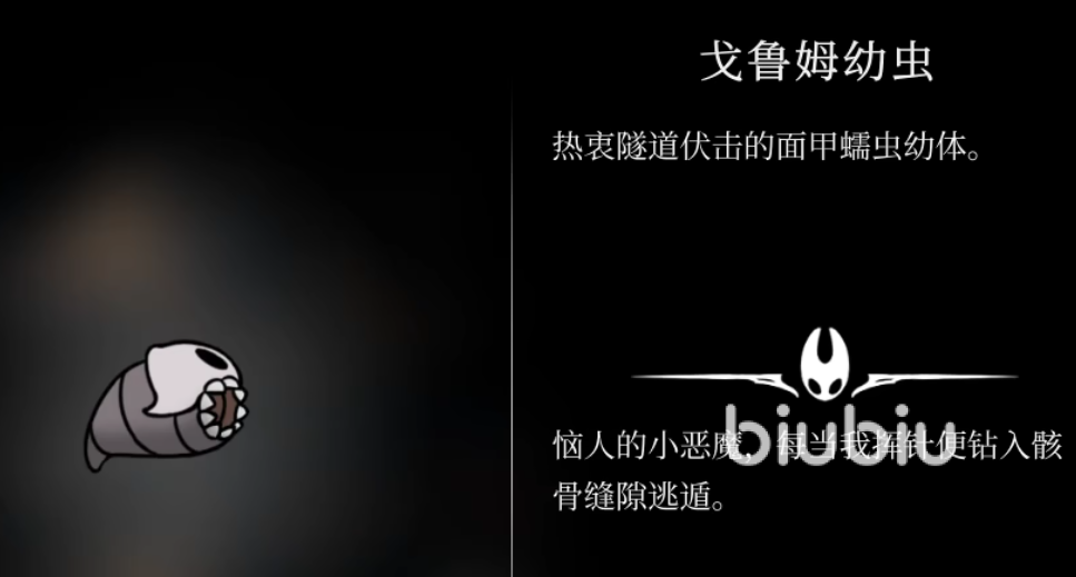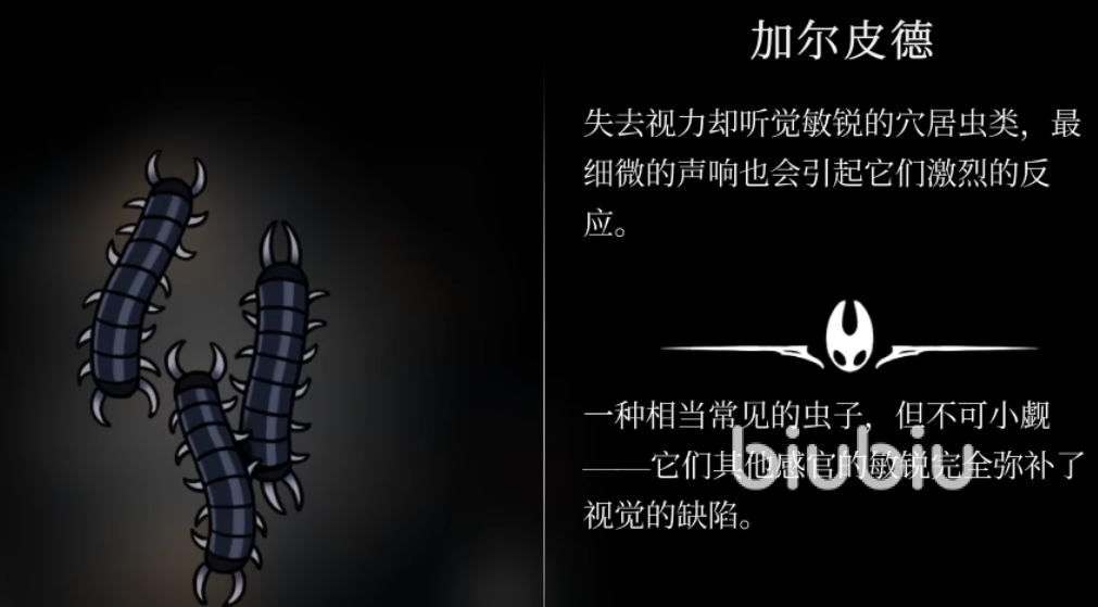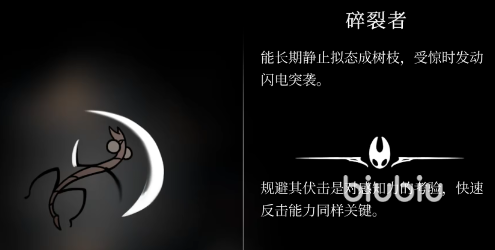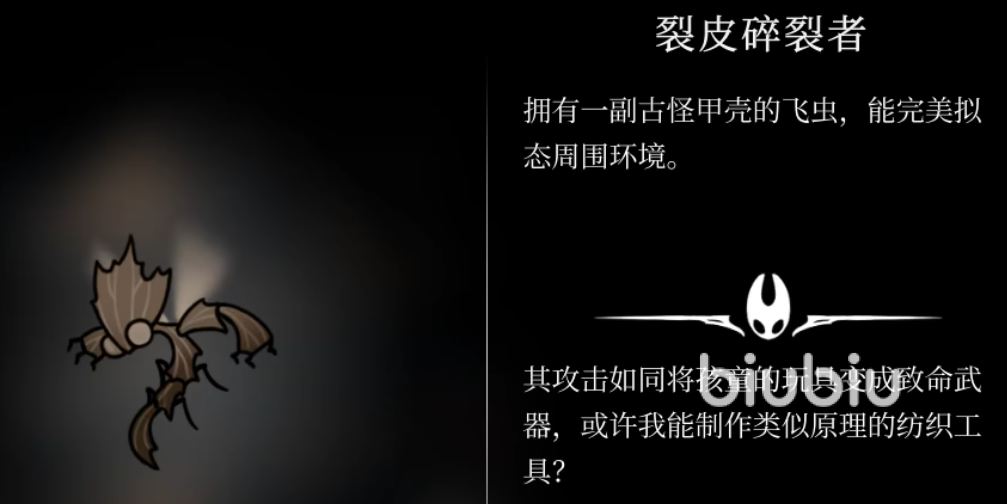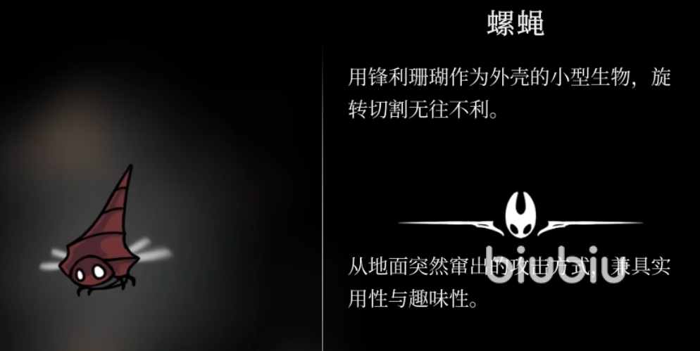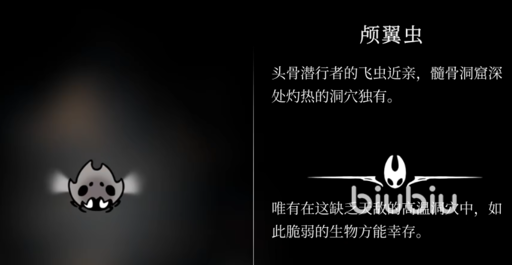 颅翼虫:出生地织巢右侧隐藏房,早期遇到的飞行敌人,攻击方式较直接。
