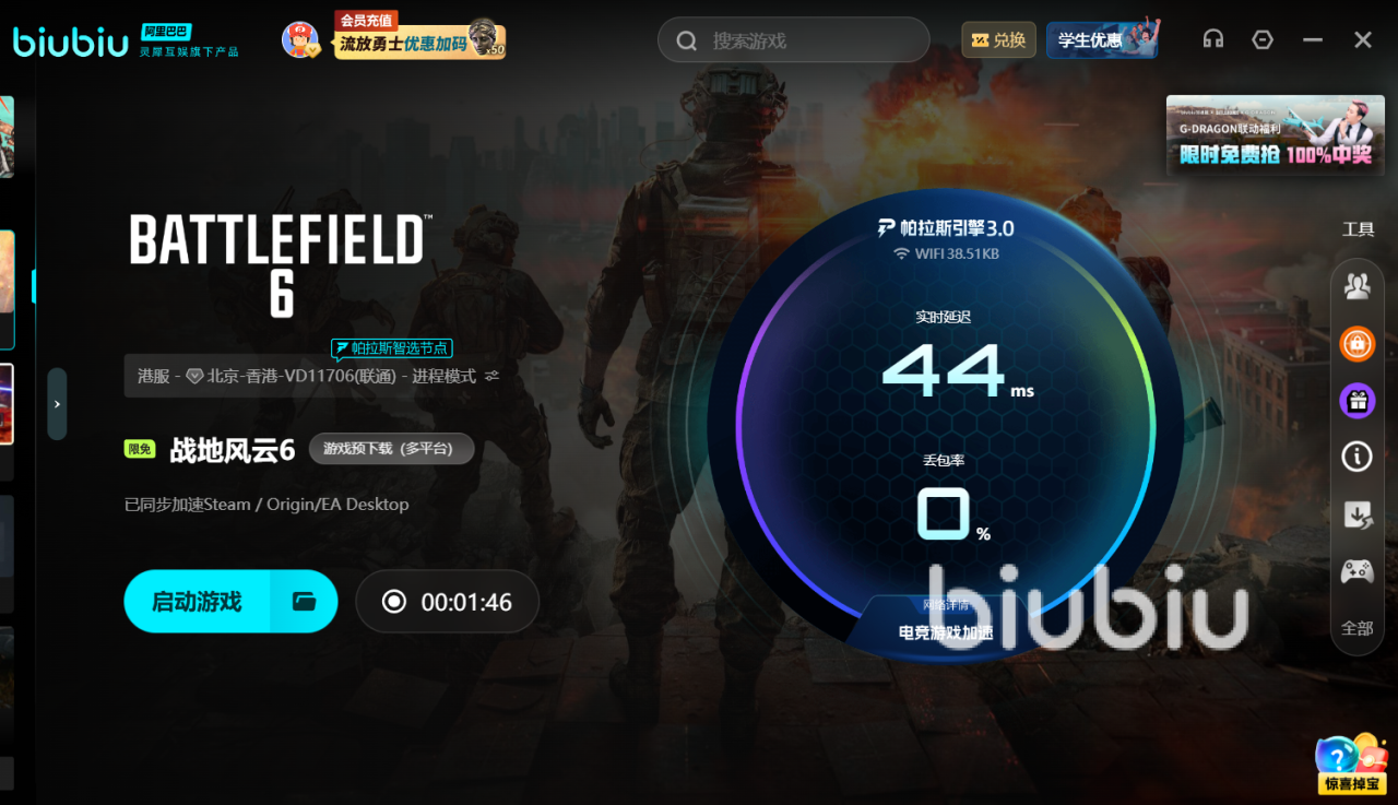 总之,在《战地6》的硝烟战场中,稳定的网络就是你的第二条命,当你在300米外屏息拉栓时,一次卡顿就可能让瞄准镜里的敌人瞬间闪现到你面前。而Biubiu的电竞级加速,能让你的每一发子弹都精准穿透沙尘暴,在动态战场中始终快人0.1秒,这才是现代战争的终极生存法则!