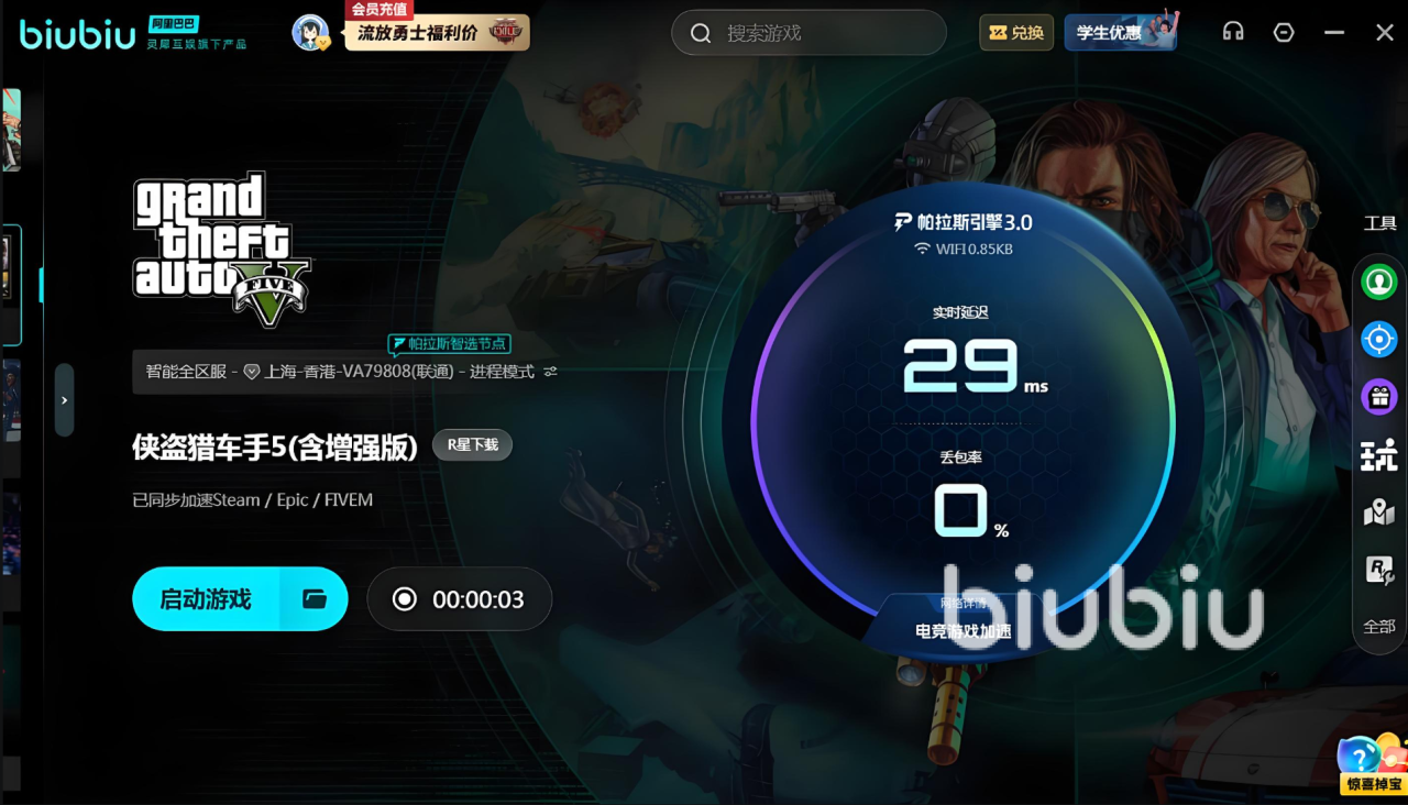 2025年09月17日 18:56 来源:黄忠义界王神gta5可以满足玩家在开放的世界中自由的探索,而且整个游戏凭借比较细腻的游戏世界,丰富多彩的玩法再加上特别高的自由度,目前引起了较多玩家的关注。只是玩家想要了解gta5加速器怎么选比较好呢?因为很多玩家在体验gta5游戏时,如果遇到延迟、卡顿,甚至会面临掉线的情况,这样会降低体验感。其实在选择加速器的时候,小编觉得玩家可以尝试选择biubiu加速器。