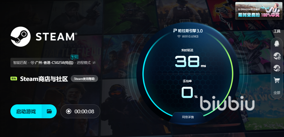 方小编给大家带来的这个应用有很多福利,首先值得一提的就是新用户登录直接就可以得到24小时免费体验的机会,此外全平台用户都可以享受三天体验时长,在指定区域内填写好【biubiu不卡顿】就能轻松到手。而且当下biubiu已经完成了3.0系列的帕拉斯引擎提升,实际效果还经过了Aixleft这位是非权威的职业选手认证,品质值得保障。