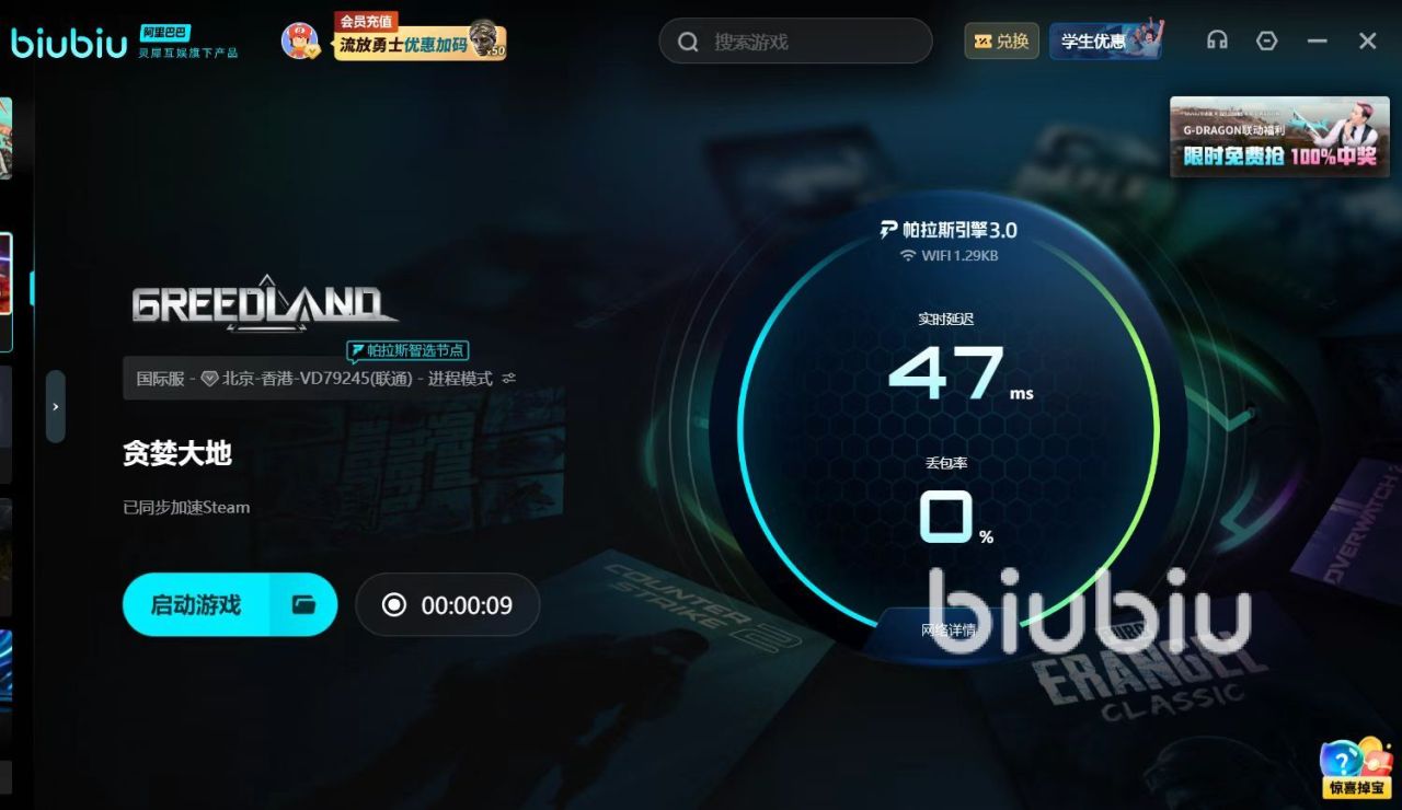 biubiu近期携手冠军选手Aixleft(小叮当)重磅升级至帕拉斯3.0引擎,专为贪婪大地等大型竞技游戏量身定制,毫秒级分析网络病灶,精准匹配加速策略,实时优化传输协议,激烈团战依然流畅如丝,无论是宿舍WiFi还是4G/5G,都能保障连接坚如磐石。