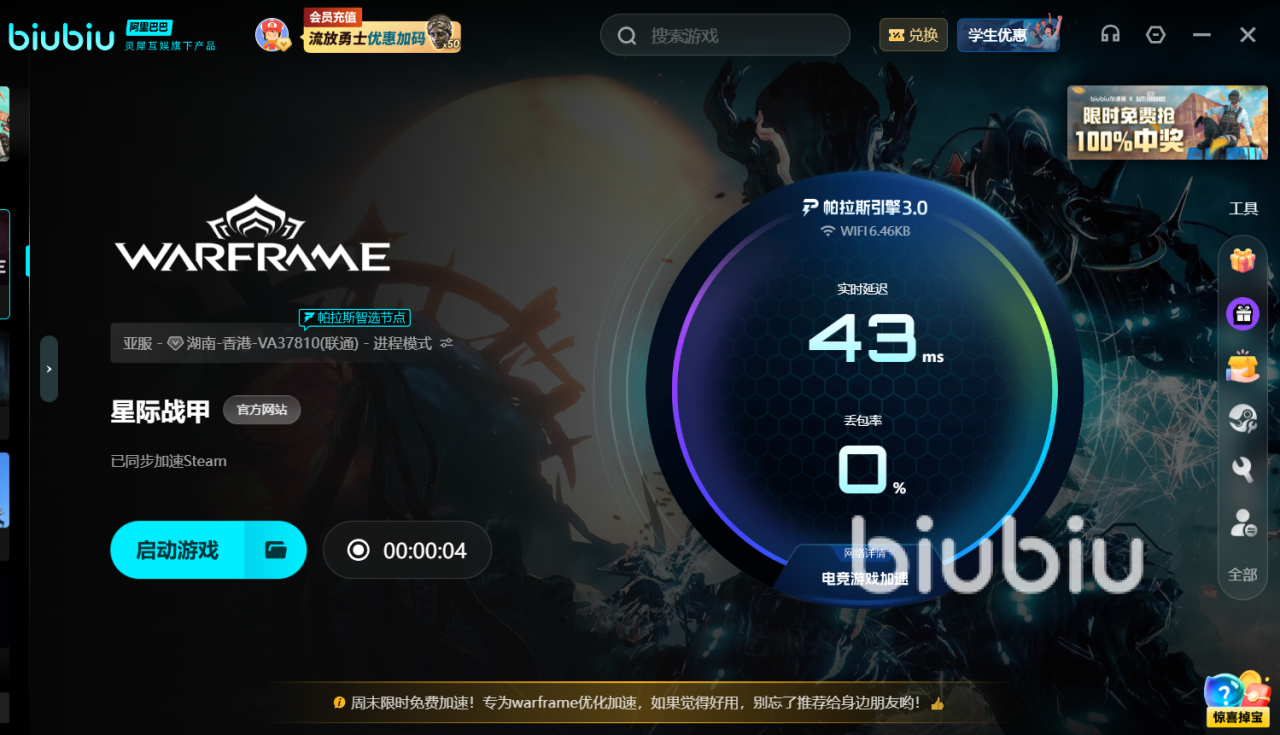 综上所述,如果你也是《星际战甲》的玩家,或者正在寻找一款好玩的科幻射击网游,那么不妨试试Biubiu吧!它不仅能解决你的网络问题,还能让你在游戏中更加畅快地战斗。现在就去下载,开启你的星际冒险之旅吧!