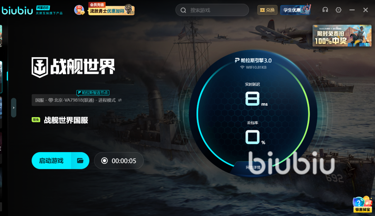 针对战舰世界等资源密集型游戏,biubiu加速器近期重磅迭代,与顶尖职业选手Aixleft合力打造帕拉斯引擎3.0。该引擎专为大型多人在线环境设计,采用智能路径优化和动态带宽分配,可实时检测并规避常见网络雷区,在复杂海战场景下能将丢包率压至5%以下,确保玩家移动、瞄准指令无缝衔接。