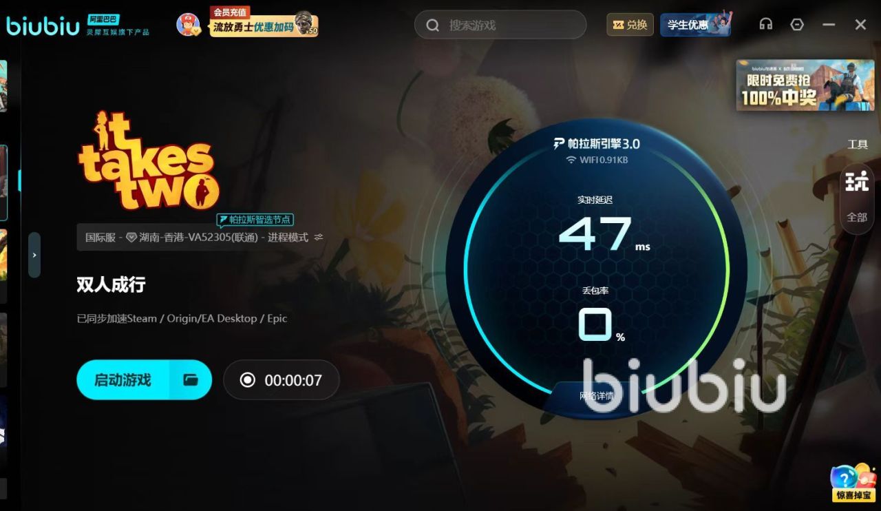 以上就是对双人成行卡顿应对方法的介绍了,从硬件调优、系统清理到网络升级,再借力biubiu的专业加速服务,双人成行中的每一次惊险跳跃与完美配合都将在稳定流畅的环境中完成,都能为你的游戏之旅保驾护航。快来试试吧,让你的双人冒险更加顺畅无阻。