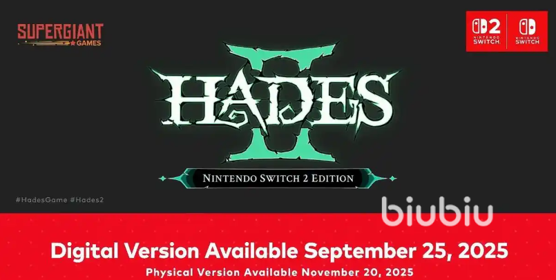 黑帝斯2的数字版将于2025年9月25日正式登陆,Switch 2、PC及Mac平台同步发售,而实体版本要到2025年11月20日才会发售。