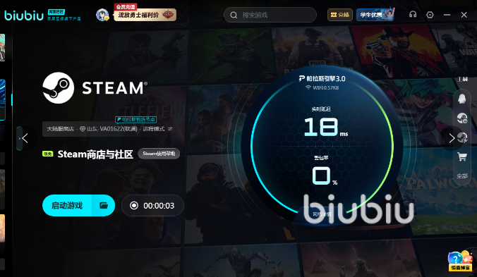要想使用这款加速器其实很简单,玩家可以通过以上的链接下载,搜索steam平台,即可完成加速。现在还会推出免费加速时长,新用户在下载完成注册之后,第1次登录就可以领取24小时。所有的用户都可以使用兑换码【biubiu不卡顿】获取3天免费加速时长,让大家可以轻松的领取免费加速时长。现在biubiu也迎来重磅升级,这一次的升级也会携手知名的冠军选手Aixleft一起打造,会充分的结合职业选手对于网络高要求优化加速的方案。另外还会全新的引入帕拉斯引擎3.0,这个引擎在数据传输效率方面就能够有效得到提升。