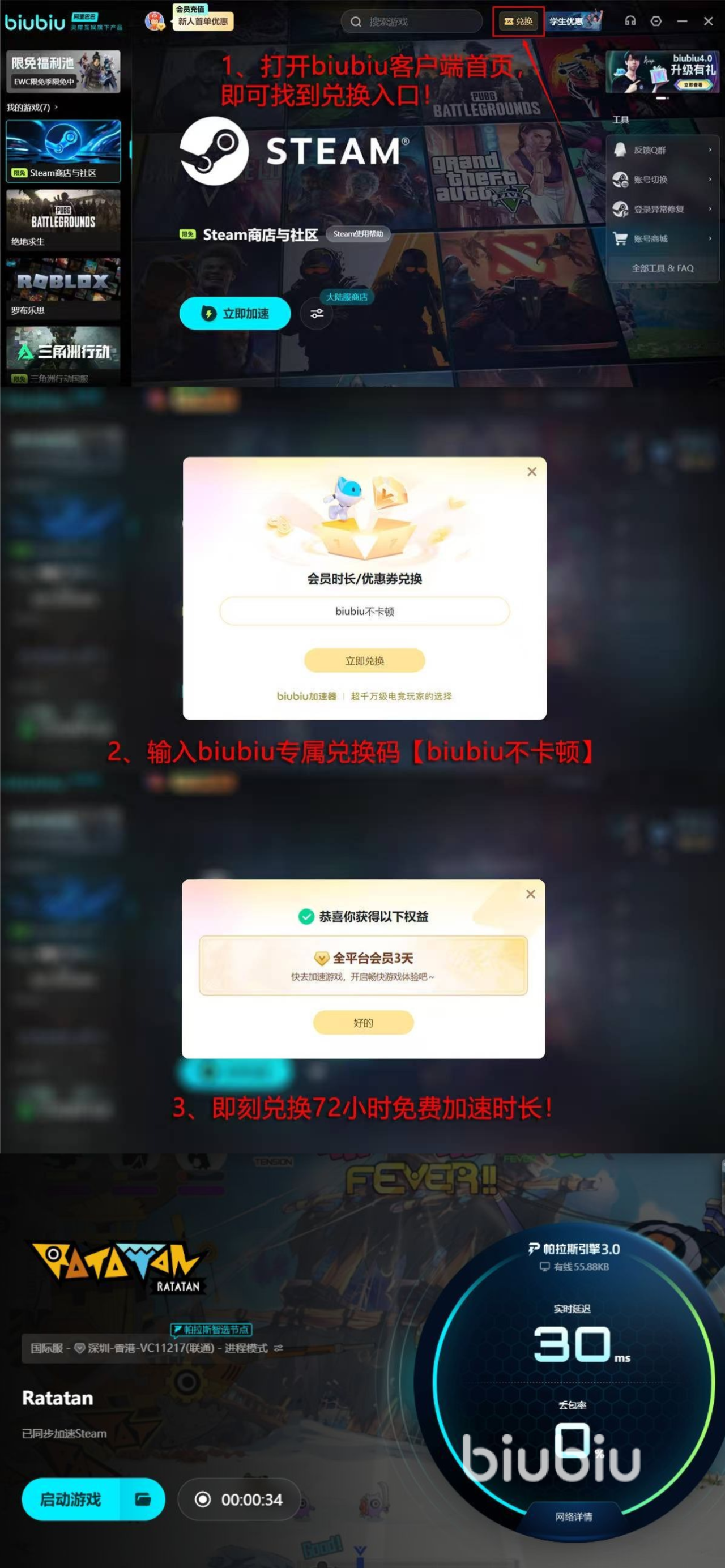 上方给大家带来的这一款提速平台还是比较好用的,当前给全体新用户提供了24小时的免费体验机会,大家注册时就可以直接领取到了,此外全平台用户还可以享受三天体验机会,在指定区域内通过【biubiu不卡顿】就可以轻松拿到手了。这是平台考虑到了有的用户没有及时享受新人福利,所以在这一方面提供的福利较多,让大家还有其他的机会可以免费感受实际效果。