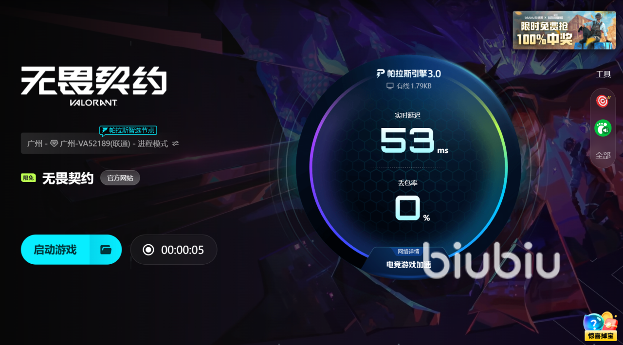 所以,如果你也正被无畏契约卡在加载界面、掉线、延迟困扰,不如现在就下载biubiu加速器,用免费时长先试试效果。开启之后,你就能放心匹配、安心排位,不再因为加载卡死错过比赛。让每一局都能全力发挥,享受稳定低Ping带来的爽快枪感,把精力都花在赢下回合上。
