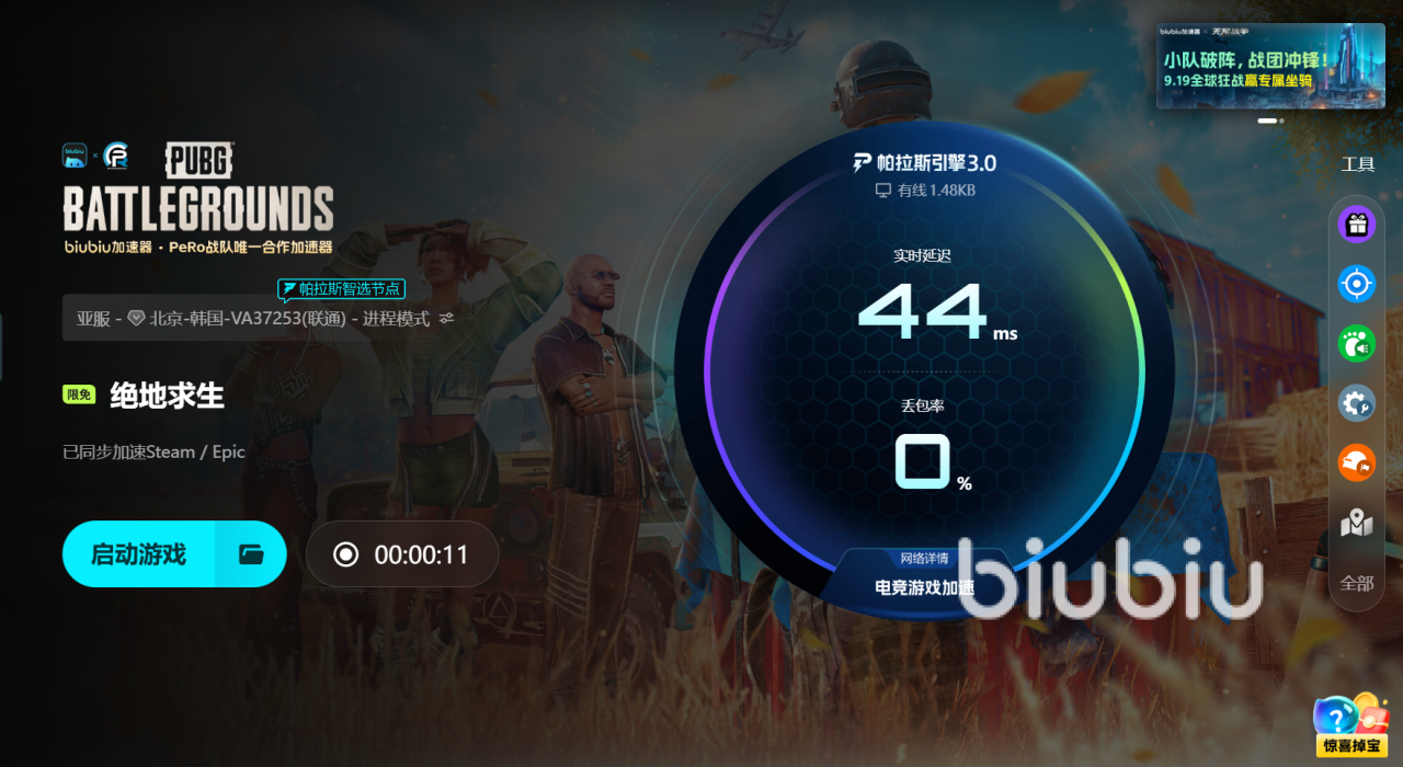 biubiu最大的竞争力在于技术底蕴,采用最新帕拉斯引擎3.0,实时跟踪延迟、丢包和抖动情况,并智能选择最优节点。一旦检测到网络波动,还能毫秒级切换备用线路,保证游戏数据稳定传输。相比传统的固定线路加速,帕拉斯引擎采用动态调度和智能预判,让晚高峰和跨区匹配依然能保持低Ping,从而维持稳定帧数。更让人放心的是,FPS职业冠军Aixleft亲自参与了biubiu的优化流程,将赛场对低延迟的严格标准融入调优方案。多次实测PUBG的跳伞、对枪、载具驾驶等场景,反复打磨线路策略,确保在复杂环境下帧率依旧平稳,操作和画面高度同步。