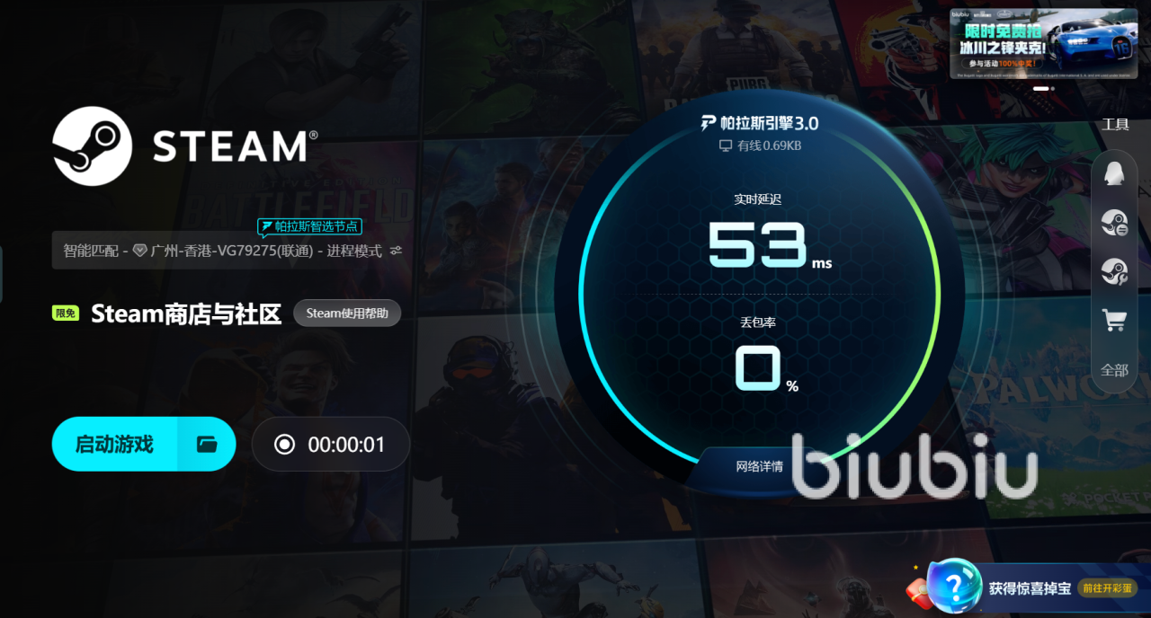 biubiu之所以能在排行榜上拿高分,靠的是强大的帕拉斯引擎3.0技术。它能够实时跟踪延迟、丢包和抖动等数据,自动匹配最佳线路,并在网络拥塞时毫秒级切换备用节点,确保连接始终稳定。相比传统固定线路工具,帕拉斯引擎支持动态调度和智能预判,提前切换最优路径,就算晚高峰或全球促销时也能保持流畅。更让人放心的是,FPS职业冠军Aixleft深度参与了biubiu的调优工作,并将赛场上对低延迟和高稳定性的严格标准全面应用到优化方案中。测试了多种跨区访问和支付场景,反复打磨线路策略,确保即使多人同时访问 Steam 商店,页面加载依然快速,支付过程也不会卡死。
