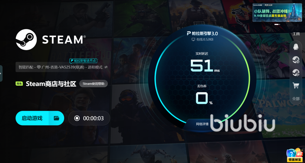 biubiu加速器现已切换到全新的帕拉斯引擎3.0。它可以实时监控用户的网络状况,动态分配延迟最低、稳定性最强的线路,并在链路出现波动或拥堵时即时切换,避免因丢包或延迟飙升造成的卡顿和掉线。相比传统的固定方式,它采用动态调度和灵活优化机制,即便遇到高峰流量或跨区数据传输,也能保证网络稳定不掉线。同时,职业FPS冠军Aixleft亲自参与项目,作为biubiu体验官把自己在赛场上积累的低延迟与稳定性经验融入产品改进,让biubiu加速器在多人激战和高压力环境下依旧稳得住,帮助玩家避免关键时刻延迟过高或掉线的尴尬。