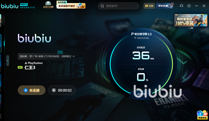 近期biubiu对产品使用体验进行了全面的升级,开启游戏优化加速功能的操作变得更加简单。直接在软件中搜索游戏名称就能够看到支持平台的对应加速服务,通过智能节点推荐就可以线路延迟情况为我们推荐最优节点,不需要一个个进行ping值测试,让大家快人一步进入游戏体验。游戏免费领取功能可以帮助大家一键入库限免游戏,更是能够轻松完成跨区入库,不需要完成复杂的跨区设置,更不用面对加载失败的界面唉声叹气了。