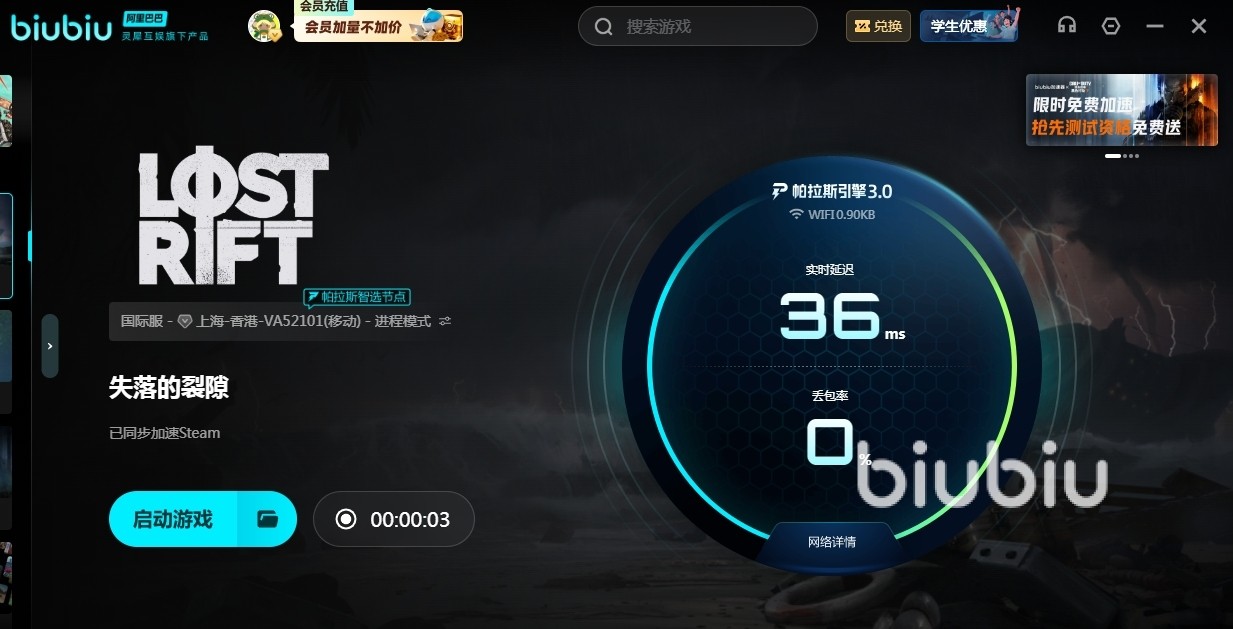现在加速器迎来重磅版本升级,更是联手冠军选手Aixleft一起打造专属的加速方案,而这次升级主要的亮点还有加入帕拉斯引擎3.0。通过ai智能预判网络的波动,动态的调整加速的策略可以进一步的提升加速的稳定性,在复杂的对战场景下,网络依然比较稳定,在福利方面也是很有诚意的。新人在注册之后就可以享受24小时加速免费时长,新老用户都可以在页面输入口令【biubiu不卡顿】,额外领取三天的免费加速时长,可以尽情的享受高品质的加速服务。