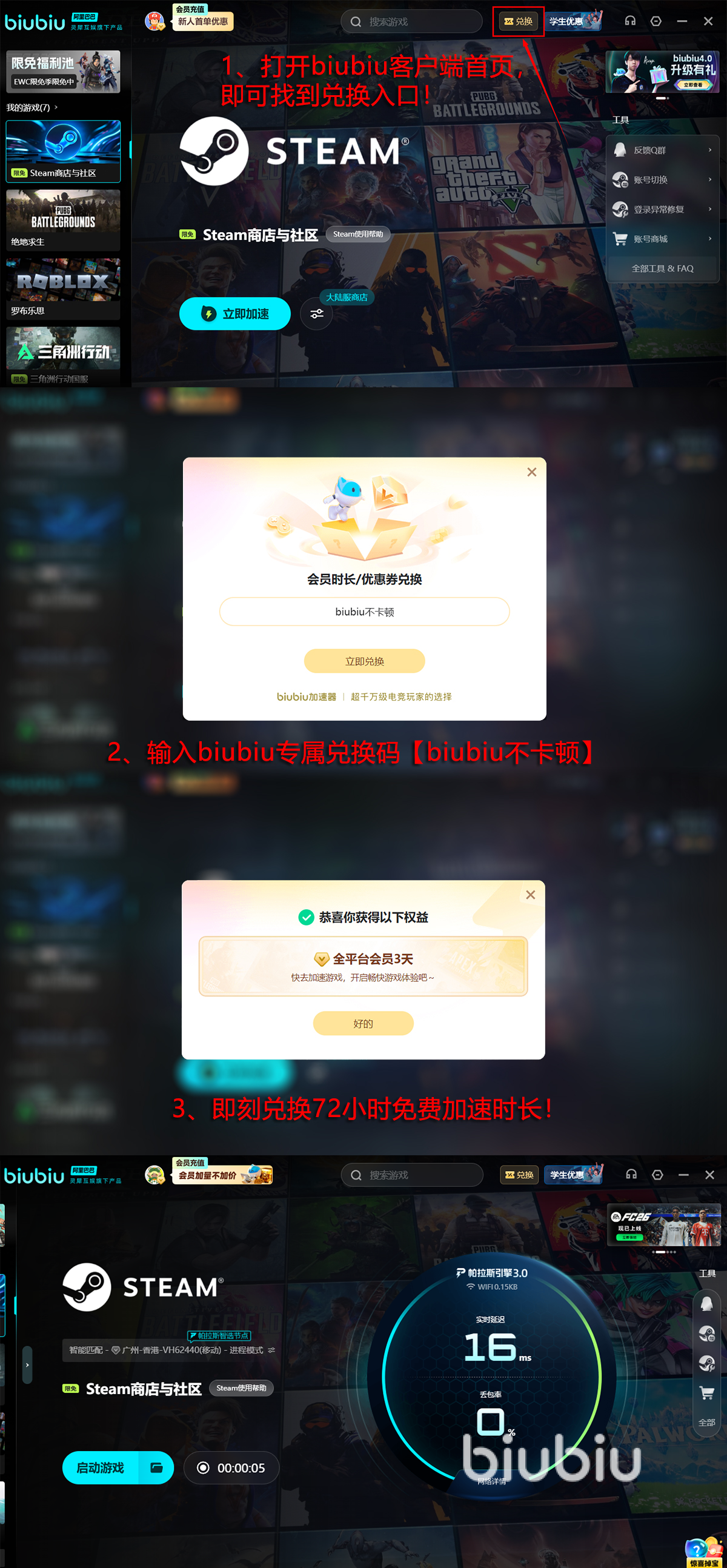 当大家入手之后,就建议先用biubiu。并为Steam畅快提速后,即可获得更流畅的下载体验,告别龟速!对于新用户来说,可马上领取24H的免费加速,率先安装好游戏!后续还想加速的话,新老用户可输入兑换码【biubiu不卡顿】,就能额外享受三天免费加速!值得一提的是,它经过重磅升级,加入了帕拉斯引擎3.0,与万众瞩目的冠军选手Aixleft一起塑造,带来了无与伦比的畅快加速感!