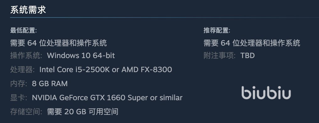 需得满足下面这些条件:处理器得是64位的,可以用Intel的i5 - 2500K,或者AMD的FX - 8300,这样玩起来才流畅,不会卡顿或者延迟。系统是Win10 64位;内存至少8GB;显卡NVIDIA GTX 1660 Super或同性能就行;存储要留20GB可用空间。