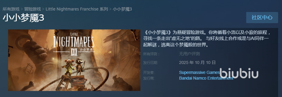 现在的中国市场是庞大的,很多游戏在初始发售版本中就加入了中文版,小小梦魇3也是这样。所以我们在Steam上进行查找时,用中文名就可以搜到,如果用英文名《Little Nightmares III》也可找到相关正确查找页面。