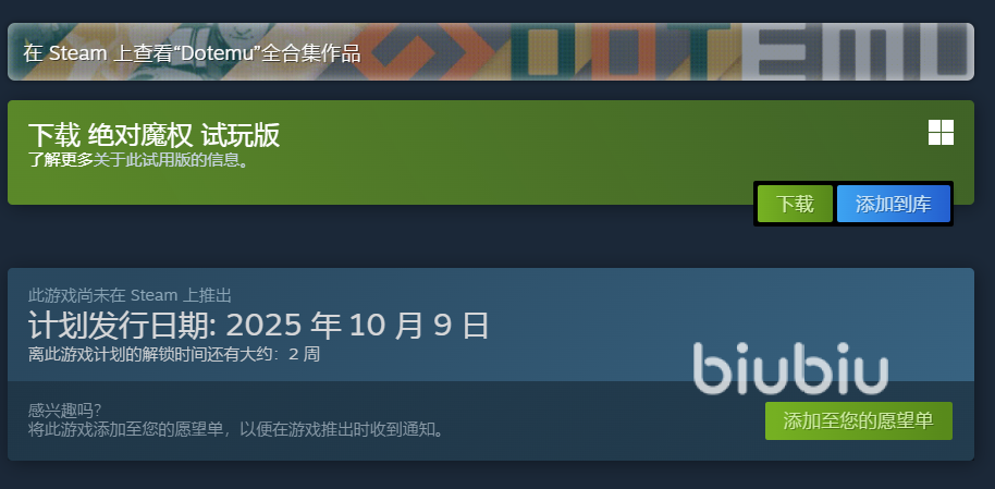 根据目前的发售情况来看,大家能选的绝对魔权发售平台就是steam了,用上biubiu之后不管是登录平台还是后续玩游戏的联机过程,享受高质量加速技术的帮助后,都会十分平稳。价格目前官方还没有公布,在10月9日正式发售前会有准确消息。另外等待期各位可以尝试下试玩版本,也能提前熟悉下玩法。