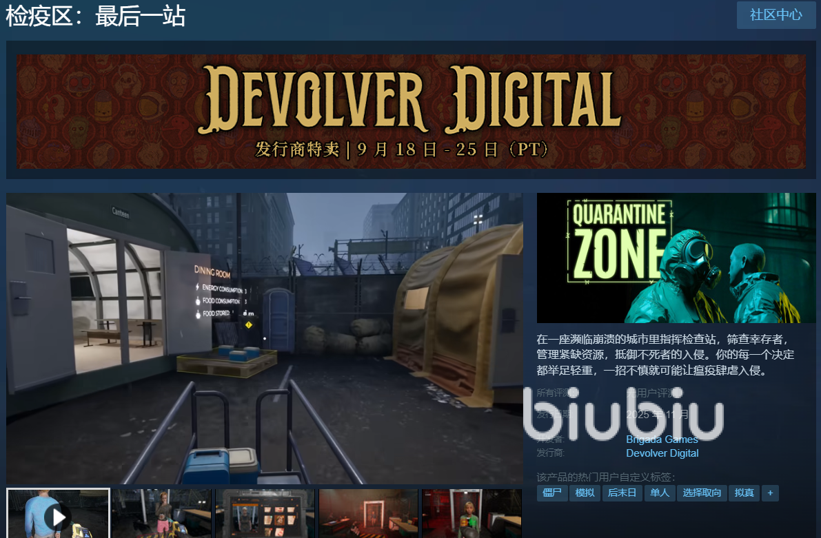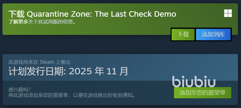 另外还要注意一点,官方的中文译名叫做《检疫区:最后一站》,需要搜这个官方定名才能找到哦,也可通过英文名Quarantine Zone: The Last Check添加愿望单,待11月发售后直接购买下载。
