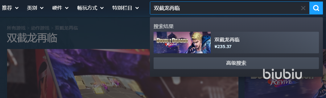 本次steam的页面上直接就是中文命名,因此我们使用中/英文都是可以搜索到它的,其官方英文名为 《Double Dragon Revive》,喜欢这款游戏的小伙伴不妨现在就复制去搜索一下吧。
