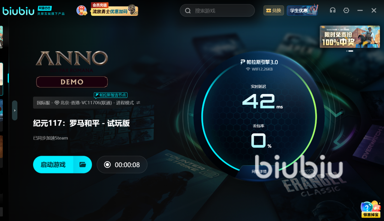 近期biubiu加速器已迎来重磅技术跃升,玩家期待已久的帕拉斯引擎3.0现已全面投入使用。其研发过程精益求精,特别邀请顶级电竞赛事选手进行了深度联合验证,实现了稳定性与极限速度的双重突破,更高连接强度、更低延迟。