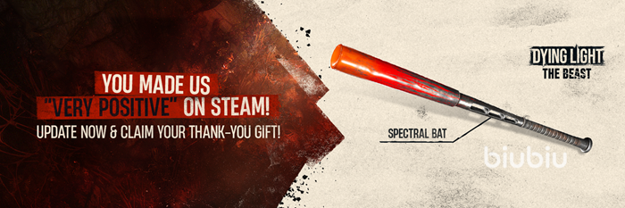 除了预购奖励之外,因为游戏上线后获得了特别好评,官方推出了感谢礼,内容是一个稀有品质的棒球棍武器幽灵棒球棍。这个武器不需要我们额外去领取,更新游戏到最新版本之后直接进入储存箱中就可以。还有一个需要提醒的是,在累计游玩超过4个小时之后就可以获得稀有武器焚狼斧的图纸,这把斧头还是比较帅气的,整体像是燃烧火焰的感觉,不过解锁图纸之后还需要大家收集材料前往工作台进行制作哦。个人感觉图纸比直接送武器要好得多,毕竟我们还可以自己无限制作出来。