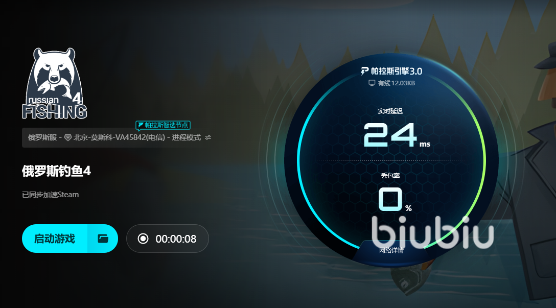 在众多适配《俄罗斯钓鱼4》的加速工具中,biubiu加速器是性价比极高的选择。它针对游戏的网络需求进行了专项优化,能精准定位并规避拥堵节点,从数据传输层面减少掉线隐患,不同于普通加速器的固定线路模式,biubiu可以实时监测网络状态,确保垂钓过程中指令传输的连贯性,即便在晚间网络高峰时段,也能稳定连接游戏服务器。