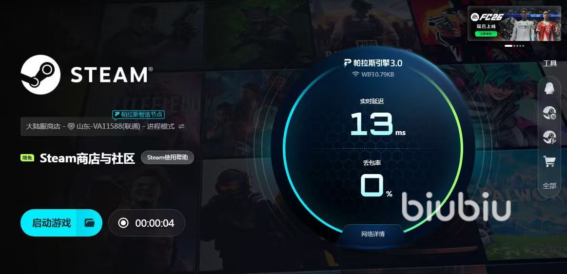 其次就是卡顿和延迟问题,这类问题基本上集中在网速不太好的情况下,有时候游戏服务器临时出现故障“抽风”,也会导致延迟较高,影响操作响应。一般来说,使用加速性能强的加速器都能有效解决,而biubiu加速器已完成重磅升级,它也能在用户与国际服游戏服务器间建立稳定传输通道,通过智能选路技术有效降低延迟,同时联合冠军选手Aixleft合力打造,为玩家提供优质的加速环境;更引入帕拉斯引擎3.0,提高游戏的体验。