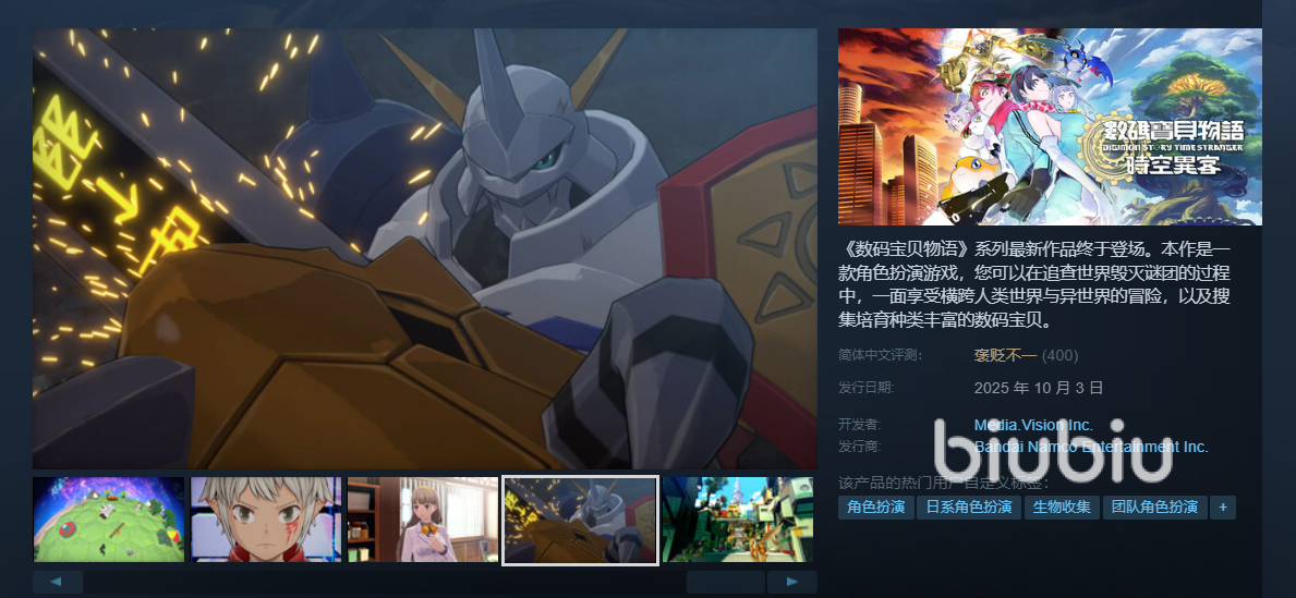 现在游戏基本上在发售时就会开放中文版本,这款新游也是如此,因此我们直接用中文名称就能在steam平台上找到它。另外它显示的英文名称为《Digimon Story: Time Stranger》,游戏封面中英文名称都是有的,各位可以进一步进行确认,毕竟这是系列游戏,有不同版本,双重确认能保证大家找到正确的。