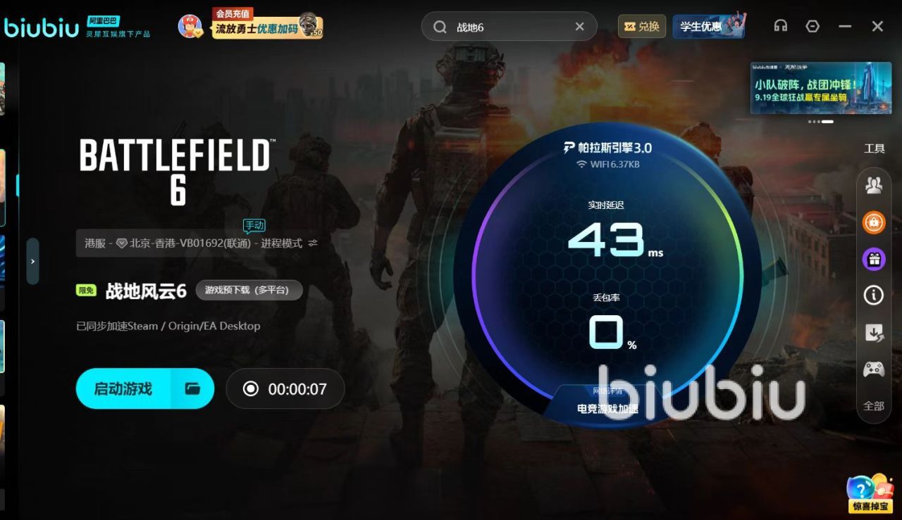 更吸引人的是,biubiu加速器近期推出限时免费福利活动,战地系列游戏于10月1日0点起至10月20日开启完全免费加速,而战地6作为重点将于10月10日23点上线后同步开启限免。此外,官方还举办了抽奖活动,参与就有机会赢取战地风云6魅影版。更值得欣喜的是,首次注册平台自动赠送24小时免费体验权限,此外输入【biubiu不掉线】即可无条件顺延72小时,新人叠加福利综合可以免费加速体验长达96小时,门槛极低。