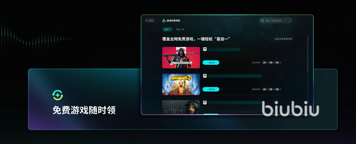 另外这款平台还开了诸多福利活动和功能,可以通过绑定游戏平台账号一键完成喜加一操作,快速领取平台免费赠送游戏大作。新用户注册完成后能够畅享24小时免费加速时间,更是可以在平台中使用“biubiu不卡顿”兑换码直接获取3天额外的免费时长,共计四天的体验时间足够我们通关一个游戏作品了,还是非常给力的。