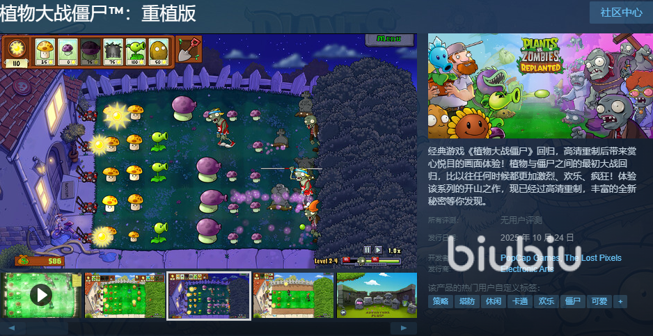 植物大战僵尸重植版在steam平台上的名称是《植物大战僵尸™:重植版》,英文名为Plants vs. Zombies: Replanted。无论玩家搜索中文名还是英文名,都能轻松找到并下载这款游戏。确认的上架日期为2025年10月24日,并且提供全面的中文本地化支持,确保中文玩家无需担心语言问题。