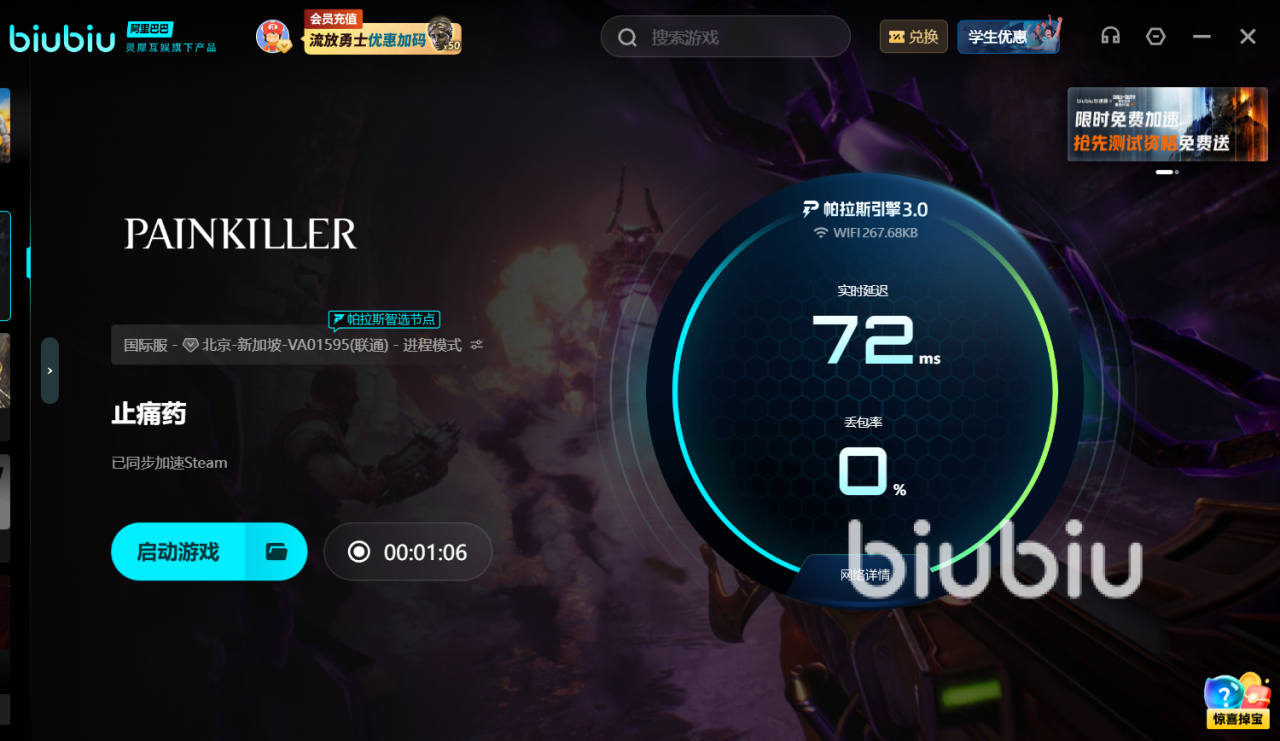 更值得称道的是,biubiu加速器刚刚完成重磅升级,全新3.0帕拉斯引擎已全面上线,经过职业选手严苛环境亲自验证的新引擎,让你轻松获得如职业赛事般稳定低延迟的极致游戏体验。