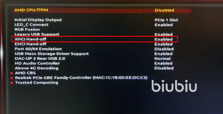 BIOS设置调整:重启电脑进入BIOS/UEFI设置界面,检查与USB相关的选项。可以尝试将 “XHCI Hand-off” 设置为 “Enabled” ,或将 “Legacy USB Support” 设置为 “Auto” 或 “Disabled” 进行测试。不同主板选项是不一样的,调整后记得保存设置。