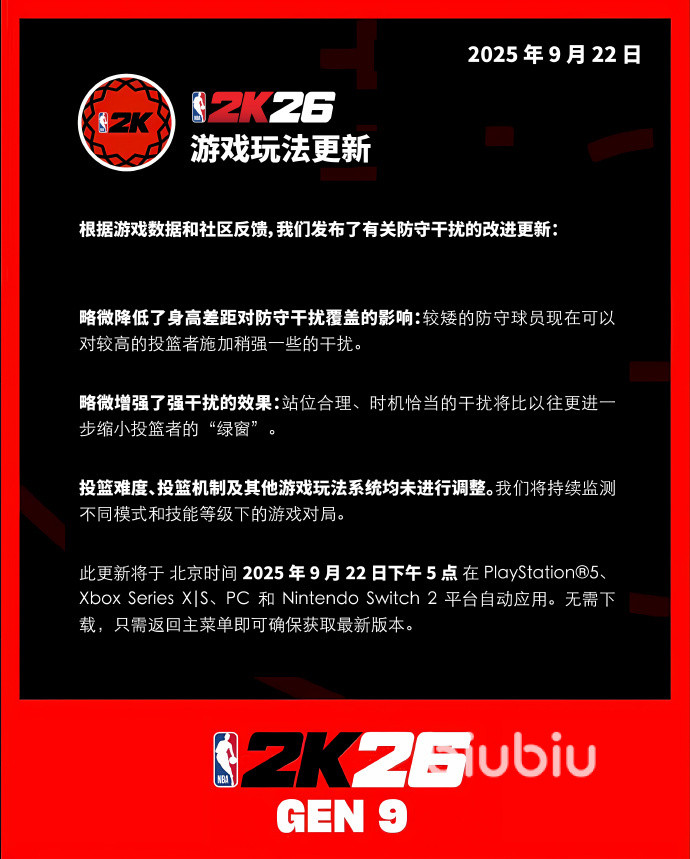 值得注意的是在此次更新内容中,有一个特殊说明,就是官方对投篮难度。投篮机制及其他游戏玩法没有做调整,大家都知道,2k26的核心内容中,就有对投篮机制进行了调整,比2k25做了优化,很可能是不少玩家并没有适应,但无论如何可以看出对于全新续作都适应期,大家还是需要一段时间的。