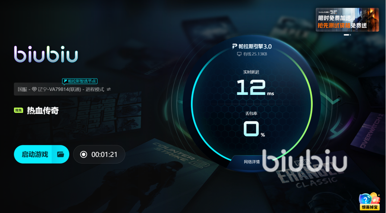 支撑这一切的,是帕拉斯引擎3.0,它像一个全天候的守卫系统实时监控延迟、丢包、抖动。一旦发现线路出现波动就会在毫秒之间切换备用节点,让数据传输不中断。不同于传统加速的固定路线,它能根据实时情况动态调整。biubiu体验官的FPS冠军Aixleft也参与了调优测试,他在高强度对局中用极端场景反复验证引擎性能。每一次波动都是一次实验数据,每一次卡顿都被记录分析。正因为有这种实战级验证,biubiu的稳定性在各种游戏环境下都能保持一致。